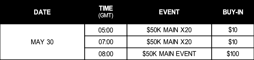 The KKPoker Main Event returns with a $50,000 guaranteed prize pool on Sunday, May 30.