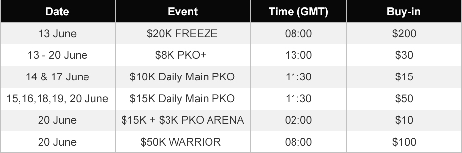Check out the exciting KKPoker tournament top picks schedule for 13-20 June below.